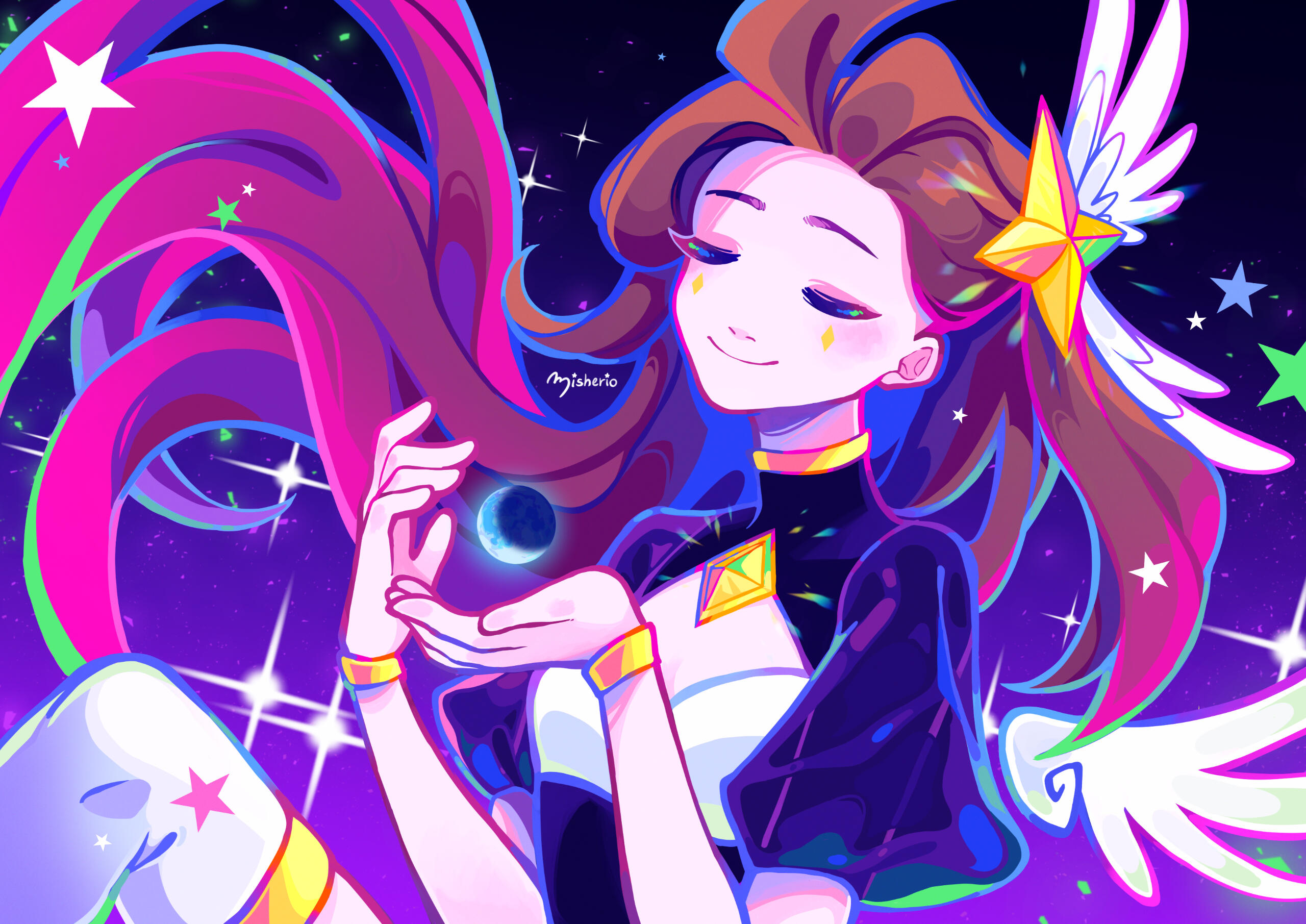 I'm Mish, an artist from Czech Republic currently living in Norway. My art is mostly digital, filled with feminine characters in a anime-like style.I have over 10 years of experience in digital art and 2 years of experience working as a graphic designer for a game company. Currently I work as a freelancer. You can find my art in full resolution on my ko-fi page. In future I want to open up a sticker and print store.Thank you for taking your time to visit my page.